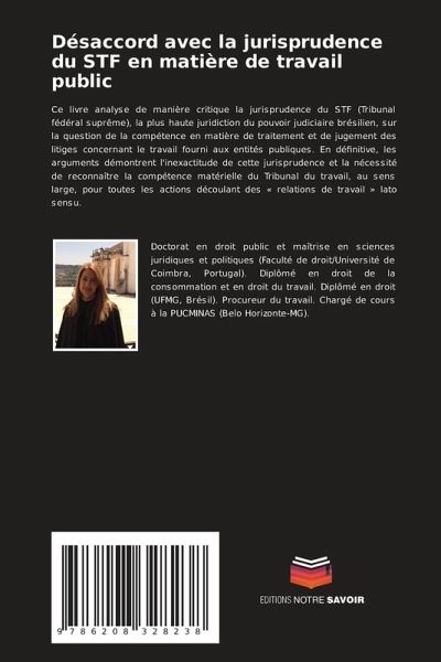 Ce livre analyse de manière critique la jurisprudence du STF (Tribunal fédéral suprême), la plus haute juridiction du pouvoir judiciaire brésilien, sur la question de la compétence en matière de traitement et de jugement des litiges concernant le travail fourni aux entités publiques. En définitive, les arguments démontrent l'inexactitude de cette jurisprudence et la nécessité de reconnaître la compétence matérielle du Tribunal du travail, au sens large, pour toutes les actions découlant des « relations de travail » lato sensu.