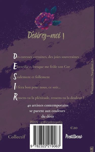 Des caresses certaines, des joies souverainesÉlectrifié e, lorsque me frôle ton CorSeulement et follementIl fera bon pour nous, ce soir...Ressens-tu la plénitude, ressens-tu la douleur ?40 artistes contemporains se parent aux couleurs du désir...Elles et eux viennent de tous horizons.De tous âges.Écrivains, chanteuses, musiciens, danseuses, poètes,Slameurs...Réunis par et pour la Poésie.Une poésie démystifiée, libre et accessible à tous.Le désir sous toutes ses formes.Le désir d'humanité.Parce qu'il est au coeur de nous.Au désir de vous.Un recueil scindé en Quatre souffles.Comme les quatre saisons.Comme les âges et les battements du coeur, aussi.Comme une lettre à votre ombre, à vos silhouettes.Chères lectrices et chers lecteurs...
