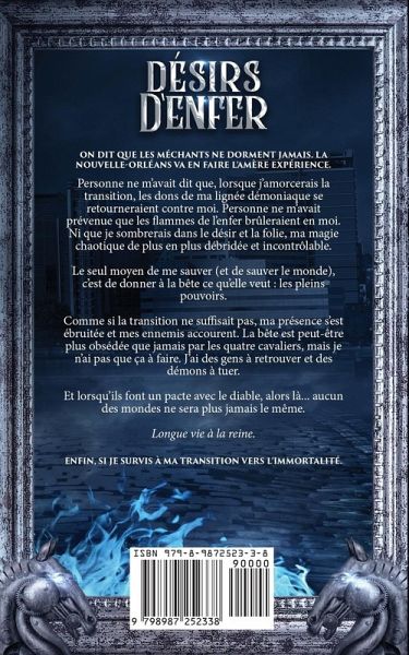 On dit que les méchants ne dorment jamais. La Nouvelle-Orléans va en faire l'amère expérience. Personne ne m'avait dit que, lorsque j'amorcerais la transition, les dons de ma lignée démoniaque se retourneraient contre moi. Personne ne m'avait prévenue que les flammes de l'enfer brûleraient en moi. Ni que je sombrerais dans le désir et la folie, ma magie chaotique de plus en plus débridée et incontrôlable. Le seul moyen de me sauver (et de sauver le monde), c'est de donner à la bête ce qu'elle veut : les pleins pouvoirs. Comme si la transition ne suffisait pas, ma présence s'est ébruitée et mes ennemis accourent. La bête est peut-être plus obsédée que jamais par les quatre cavaliers, mais je n'ai pas que ça à faire. J'ai des gens à retrouver et des démons à tuer. Et lorsqu'ils font un pacte avec le diable, alors là... aucun des mondes ne sera plus jamais le même. Longue vie à la reine. Enfin, si je survis à ma transition vers l'immortalité.