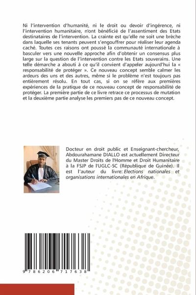 Ni l'intervention d'humanité, ni le droit ou devoir d'ingérence, ni l'intervention humanitaire, n'ont bénéficié de l'assentiment des Etats destinataires de l'intervention. La crainte est qu'elle ne soit une brèche dans laquelle ses tenants peuvent s'engouffrer pour réaliser leur agenda caché. Toutes ces raisons ont poussé la communauté internationale à basculer vers une nouvelle approche afin d'obtenir un consensus plus large sur la question de l'intervention contre les Etats souverains. Une telle démarche a abouti à ce qu'il convient d'appeler aujourd'hui la « responsabilité de protéger ». Ce nouveau concept semble calmer les ardeurs des uns et des autres, même si le problème n'est toujours pas entièrement résolu. En tout cas, si on se réfère aux premières expériences de la pratique de ce nouveau concept de responsabilité de protéger. La première partie de ce livre retrace ce processus de mutation et la deuxième partie analyse les premiers pas de ce nouveau concept.