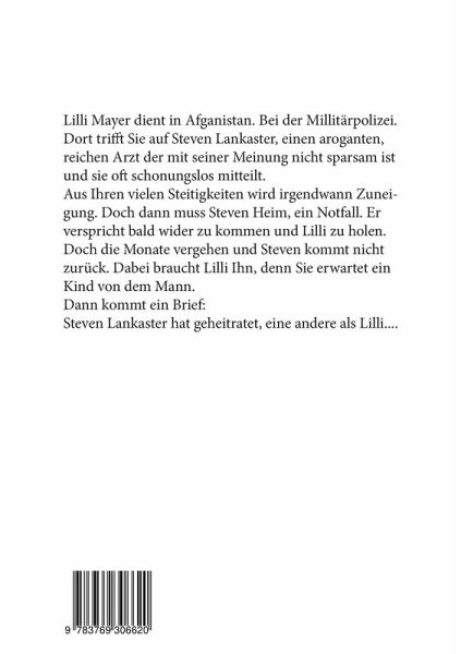 Lilli Mayer dient in Afghanistan. Bei der Militärpolizei. Dort trifft sie auf Steven Lankaster. einem arroganten, reichen Arzt, der mit seiner Meinung nicht sparsam ist und sie oft schonungslos mitteilt. Aus ihren vielen Streitigkeiten wird irgendwann Zuneigung. Doch dann muss Steven Heim, ein Notfall. Er verspricht, bald wieder zu kommen und Lilli zu sich zu holen. Doch die Monate vergehen und Steven kommt nicht zurück. Dabei braucht Lilli ihn, denn sie erwartet ein Kind von dem Mann. Dann kommt ein Brief: Steven Lankaster hat geheiratet, eine andere als Lilli.