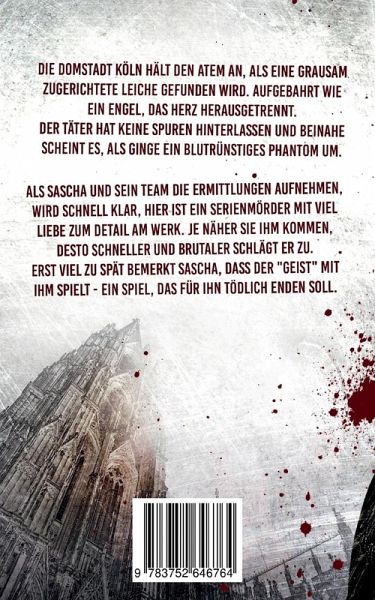 Die Domstadt Köln hält den Atem an, als eine grausam zugerichtete Leiche gefunden wird. Aufgebahrt wie ein Engel, das Herz herausgetrennt.Der Täter hat keine Spuren hinterlassen und beinahe scheint es, als ginge ein blutrünstiges Phantom um.Als Sascha und sein Team die Ermittlungen aufnehmen, wird schnell klar, hier ist ein Serienmörder mit viel Liebe zum Detail am Werk. Je näher sie ihm kommen, desto schneller und brutaler schlägt er zu.Erst viel zu spät bemerkt Sascha, dass der "Geist" mit ihm spielt - ein Spiel, das für ihn tödlich enden soll.