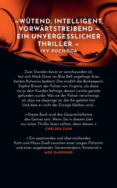 Sophie Braam ist Barkeeperin in einem eher gehobenen Etablissement, irgendwo in Virginia. Sie ist die Chefin hinterm Tresen und Übergriffigkeiten der männlichen Kundschaft gewöhnt. Aber als ein Ekel-Typ ihr erst den Lieblingsrotwein wegsäuft und dann auch noch massiv zudringlich wird, hat sie die Schnauze voll.