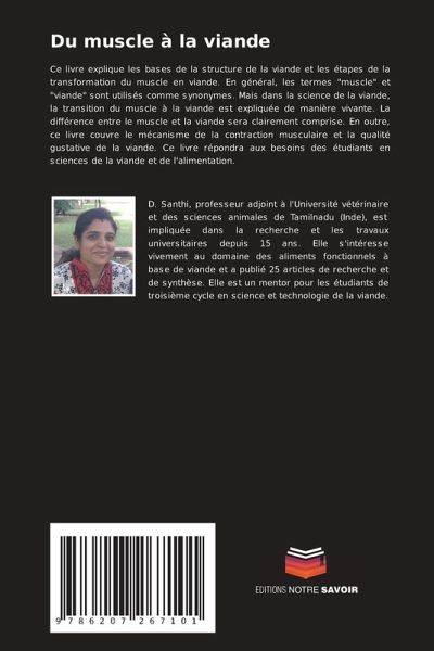 Ce livre explique les bases de la structure de la viande et les étapes de la transformation du muscle en viande. En général, les termes "muscle" et "viande" sont utilisés comme synonymes. Mais dans la science de la viande, la transition du muscle à la viande est expliquée de manière vivante. La différence entre le muscle et la viande sera clairement comprise. En outre, ce livre couvre le mécanisme de la contraction musculaire et la qualité gustative de la viande. Ce livre répondra aux besoins des étudiants en sciences de la viande et de l'alimentation.