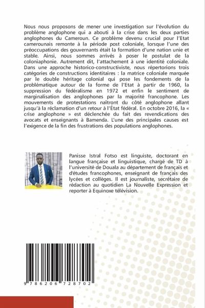 Nous nous proposons de mener une investigation sur l'évolution du problème anglophone qui a abouti à la crise dans les deux parties anglophones du Cameroun. Ce problème devenu crucial pour l'Etat camerounais remonte à la période post coloniale, lorsque l'une des préoccupations des gouvernants était la formation d'une nation unie et stable. Ainsi, nous sommes arrivés à poser le postulat de la coloniaphonie. Autrement dit, l'attachement à une identité coloniale. Dans une approche historico-constructiviste, nous répertorions trois catégories de constructions identitaires : la matrice coloniale marquée par le double héritage colonial qui pose les fondements de la problématique autour de la forme de l'Etat à partir de 1960, la suppression du fédéralisme en 1972 et enfin le sentiment de marginalisation des anglophones par la majorité francophone. Les mouvements de protestations naîtront du côté anglophone allant jusqu'à la réclamation d'un retour à l'État fédéral. En octobre 2016, la « crise anglophone » est déclenchée du fait des revendications des avocats et enseignants à Bamenda. L'une des principales causes est l'exigence de la fin des frustrations des populations anglophones.