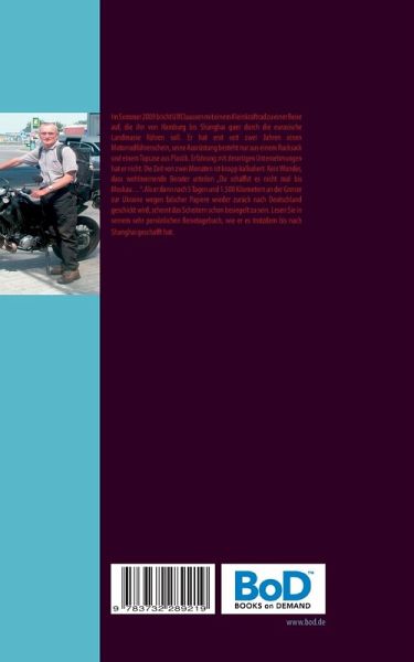Im Sommer 2009 bricht Ulf Claussen mit einem Kleinkraftrad zu einer Reise auf, die ihn von Hamburg bis Shanghai quer durch die eurasische Landmasse führen soll. Er hat erst seit zwei Jahren einen Motorradführerschein, seine Ausrüstung besteht nur aus einem Rucksack und einem Topcase aus Plastik. Erfahrung mit derartigen Unternehmungen hat er nicht. Die Zeit von zwei Monaten ist knapp kalkuliert. Kein Wunder, dass wohlmeinende Berater urteilen "Du schaffst es nicht mal bis Moskau...". Als er dann nach 5 Tagen und 1.500 Kilometern an der Grenze zur Ukraine wegen falscher Papiere wieder zurück nach Deutschland geschickt wird, scheint das Scheitern schon besiegelt zu sein. Lesen Sie in seinem sehr persönlichen Reisetagebuch, wie er es trotzdem bis nach Shanghai geschafft hat.