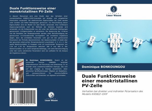 In diesem Manuskript wird eine Studie über das Verhalten einer monokristallinen KX0B22-12X1F-Solarzelle bei direkter und umgekehrter Polarisation vorgestellt. Die elektronischen Eigenschaften der Zelle werden unter dunklen und hellen Bedingungen gemessen. Zur Beschreibung dieser Eigenschaften wird ein Modell mit zwei Dioden verwendet. Eine nichtlineare Anpassungsmethode nach der Methode der kleinsten Quadrate wird verwendet, um die Zellparameter aus den unter den definierten Bedingungen gemessenen I-U-Eigenschaften zu extrahieren. Die Anpassung der I-U-Kurve und die Extraktion der Diodenparameter werden unter Berücksichtigung der gemessenen I-U-Charakteristika durchgeführt. Die erhaltenen Ergebnisse zeigen, dass die ermittelten Parameter sehr gut mit den gemessenen Parametern der PV-Zelle übereinstimmen. Der Idealismusfaktor n1 bleibt über den gesamten untersuchten Temperaturbereich unverändert, d. h. n1 = 1. Der zweite Idealismusfaktor n2 hingegen sinkt mit zunehmender Temperatur von 2,34 auf 1,79 für Temperaturen zwischen 300 K und 400 K. Der Idealismusfaktor n2 ist stark temperaturabhängig, und seine Berücksichtigung unter den sechs extrahierten Parametern kann als Leitfaden für die Analyse der Ergebnisse dienen.