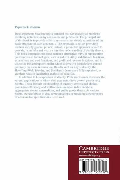 Dual arguments have become a standard tool for analysis of problems involving optimization by consumers and producers. The principal aim of this book is to provide a fairly systematic yet simple exposition of the basic structure of such arguments.