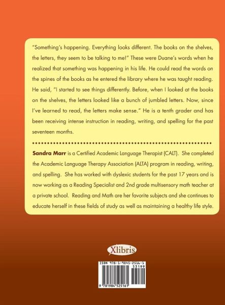 "Something's happening. Everything looks different. The books on the shelves, the letters, they seem to be talking to me!" These were Duane's words when he realized that something was happening in his life. He could read the words on the spines of the books as he entered the library where he was taught reading. He said, "I started to see things differently. Before, when I looked at the books on the shelves, the letters looked like a bunch of scrambled letters. Now, since I've learned to read, the letters make sense." He is a tenth grader, and he has been receiving intense training in reading, writing, and spelling for the past seventeen months.…mehr