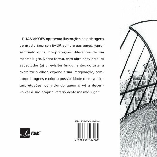 DUAS VISÕES apresenta ilustrações de paisagens do artista Emerson EAGP, sempre aos pares, representando duas interpretações diferentes de um mesmo lugar. Dessa forma, esta obra convida o (a) espectador (a) a revisitar fundamentos da arte, a exercitar o olhar, expandir sua imaginação, comparar imagens e criar a possibilidade de novas interpretações, convidando quem a vê a desenvolver a sua própria versão deste mesmo lugar.