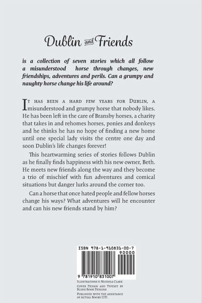Visit the Wonderful World of Dublin and Friends It has been a hard few years for Dublin, a misunderstood and grumpy horse that nobody likes. He has been left in the care of Bransby horses, a charity that takes in and rehomes horses, ponies and donkeys and he thinks he has no hope of finding a new home until one special lady visits the centre one day and soon Dublin's life changes forever! This heartwarming series of stories follows Dublin as he finally finds happiness with his new owner, Beth. He meets new friends along the way and they become a trio of mischief with fun adventures and comical situations but danger lurks around the corner too. Can a horse that once hated people and fellow horses change his ways? What adventures will he encounter and can his new friends stand by him?