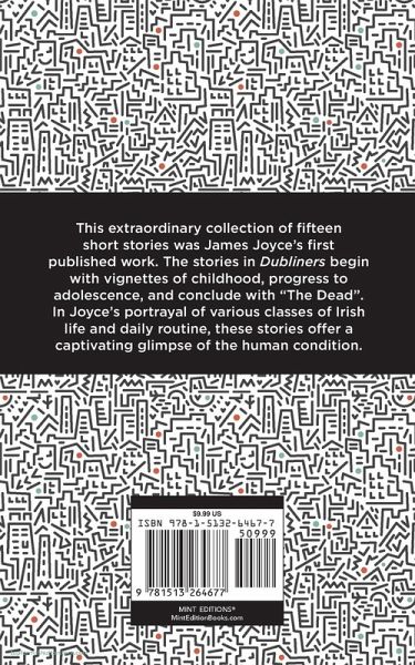 "With just one collection of stories, Joyce left his mark on almost every short-story writer who followed him" -The Guardian In this collection of revelatory stories of Dublin in the late 19th century, James Joyce presented the everyday depiction of ordinary characters in moments of an epiphany. The fifteen stories begin with characters in childhood, and progress into adolescence, and finally into maturity. The final story, "The Dead" is considered one of the most extraordinary stories ever written in the English language. Many of the characters within this collection reappear in Joyce's later work. Dubliners is a remarkably modern work, yet the most accessible of all of Joyce's writing. Authored in his early twenties, the short stories were completed in 1907, but were not published until 1914 due to many passages in the narratives that were considered too provocative to print. The stories in Dubliners were initially commissioned by an Irish farming magazine to depict quaint and brief tales of Irish life. Three stories were published before the magazine editor deemed the material unsuitable for the readership. Those appear among this extraordinary collection of 15 stories, which include: The Sisters, An Encounter, Araby, Eveline, After the Race, Two Gallants, The Boarding House, A Little Cloud, Counterparts, Clay, A Painful Case, Ivy Day in the Committee Room, A Mother, Grace, The Dead. Since our inception in 2020, Mint Editions has kept sustainability and innovation at the forefront of our mission. Each and every Mint Edition title gets a fresh, professionally typeset manuscript and a dazzling new cover, all while maintaining the integrity of the original book. With thousands of titles in our collection, we aim to spotlight diverse public domain works to help them find modern audiences. Mint Editions celebrates a breadth of literary works, curated from both canonical and overlooked classics from writers around the globe.