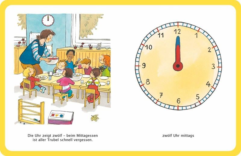 Ein Pappbilderbuch mit zwei wichtigen Lernthemen für Kinder ab 3 Jahren: Tageszeiten von früh bis spät und Jahreszeiten von Frühling, Sommer, Herbst und Winter. Sehen, Fühlen und Begreifen! Mit den fröhlichen Illustrationen und den fühlbaren Flächen prägen sich die Tageszeiten von früh bis spät und der Lauf der Jahreszeiten nicht nur optisch, sondern auch über den Tastsinn besonders gut ein. Lustige Reime zum Vorlesen und Nachsprechen unterstützen den spielerischen Ansatz mit allen Sinnen. So macht Neues entdecken und Sprechenlernen einfach Spaß!