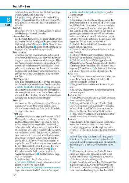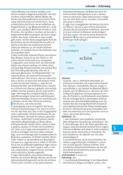 Das Stilwörterbuch verzeichnet über 100 000 richtige Verknüpfungen, feste Wendungen und Redensarten zu seinen Stichwörtern. Schlagen Sie z. B. nach, mit welchen Adjektiven sich Ironie näher beschreiben lässt (zart, bitter, leise, fein, verletzend, unverhüllt, beißend ...) oder ob man ein Medikament für oder gegen Husten nimmt.