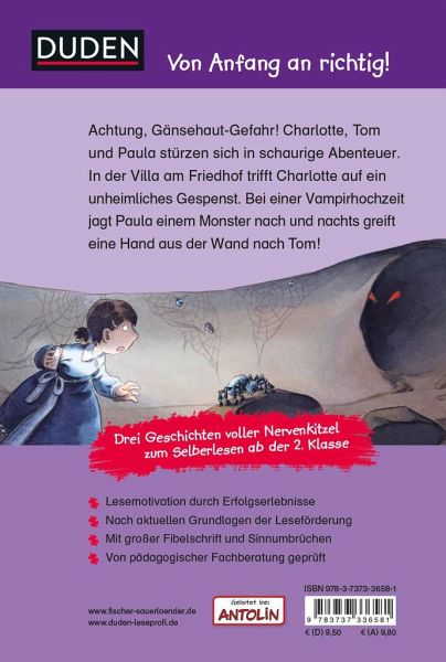 Gruselspaß zur Geisterstunde - Dieser Sammelband mit vielen bunten Bildern aus der DUDEN Leseprofireihe ist das perfekte Geschenk für Grundschulkinder ab 7 Jahren. Der Text ist genau auf die Bedürfnisse der Jungen und Mädchen zugeschnitten. So erleben Kinder im Grundschulalter schnell motivierende Erfolge und werden für das Lesen begeistert. Die Leserätsel zur Sicherung des Textverständnisses begleiten dabei beim Lesen. Spielerisch wird somit die Lesekompetenz gefördert und das Lesen lernen zum Kinderspiel.