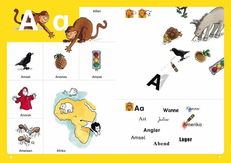 In diesem bunten Abc-Bilderwörterbuch mit vielen lustigen Buchstaben-Rätseln lernen Kinder ab 5 Jahren das Alphabet und erste Wörter kennen. Jeder Buchstabe wird mit fröhlichen Bildern, lautgerechte Beispielwörtern und spielerischen Übungen vorgestellt. Die selbsterklärenden Symbole helfen die Aufgabenstellung schnell zu erfassen. So kann mit dem Rätselspaß gleich losgelegt werden, fast ganz ohne die Hilfe der Eltern.