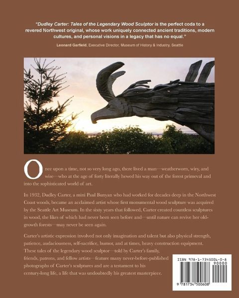 Dudley Carter-possibly the most famous artist you've never heard of... ". . . a lively and loving portrait of the great Northwest master, capturing the life and work of an artist as powerful as the ancient forests from which he drew his strength and inspiration." (Leonard Garfield, Executive Director, Museum of History & Industry, Seattle)Dudley Carter: Tales of the Legendary Wood Sculptor combines hundreds of photographs of Carter's works with over fifty fascinating stories about him. Dudley's family, friends, notable fellow artists, architects, journalists, historians, patrons, business magnates, educators-people whose lives were impacted by their personal association with Dudley or by their connection to some of his works-recount his illustrious century-long life, a life that was undoubtedly his finest masterpiece.In 1932 Dudley Christopher Carter, a forty-year-old mini Paul Bunyan, literally hewed his way out of the forest primeval and into the sophisticated world of art. Carter's first experiment in monumental wood sculpture, Rivalry of the Winds, inspired by a legend important to the Northwest Coast Duwamish people, was purchased by the Seattle Art Museum.Born into a pioneering logging family in 1891, as a teen Dudley lived with his family among the Kwakiutl people at Alert Bay in British Columbia. There he acquired a deep appreciation for Native art and culture. That appreciation is readily apparent in many of the fine works Dudley created over his lifetime.In 1947 Carter was the subject of a Life magazine article and a Paramount Pictures film. Reams of newspaper articles about the artist appeared over the years. His fame and reputation continued to grow, and by the 1970s he had amassed a reputation as a fine artist who commanded lucrative commissions for dozens of public art projects and private collections throughout western North America. At the age of 96, Dudley Carter was named the first ever artist in residence for Washington State's King County Parks. Carter's prolific career spanned six enthralling decades, ending in 1992 when he died at the age of 100 with dozens of works still in progress.