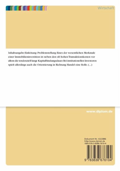 Eines der wesentlichen Merkmale einer Immobilieninvestition ist neben den oft hohen Transaktionskosten vor allem die tendenziell lange Kapitalbindungsdauer. Bei institutionellen Investoren spielt allerdings auch die Orientierung in Richtung Handel eine Rolle. Aus diesem Grund ist es für denjenigen, der sein Kapital gewinnbringend in eine Immobilie investieren möchte, unbedingt erforderlich, sämtliche Chancen und Risiken des Investitionsobjekts zu analysieren und abzuwägen, ob seine Erwartungen in die Entwicklung des Investitionsobjektes erfüllt werden können. Daneben ist als ein zweites Erfordernis die Gewährleistung der nachhaltigen Wertentwicklung der Immobilie anzuführen. Drittes und für institutionelle Investoren ebenfalls maßgebliches Kriterium ist die Erkennung bzw. das Vorbeugen gegen mögliche Behinderungen bei einer Weitervermarktung. Wichtig ist deshalb, im Vorfeld einer Transaktion ein Maximum an Informationen über das Objekt einzuholen, um mit Hilfe von größtmöglicher Transparenz und Sicherheit die Erfolgschancen der Investition zu erhöhen, den Preis für das Gut Immobilie bzw. das Investitionsobjekt festzulegen und damit auch das einzubringende Kapital zu sichern sowie eine bestimmte Rendite zu erzielen.