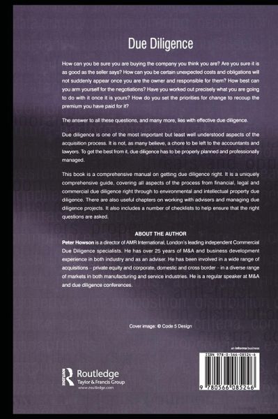 '... a totally comprehensive manual and reference book explaining, in detail, the process of due diligence when contemplating the purchase of a company... Peter Howson has written an excellent and unique book.' Financial Advisor 'This book is an extraordinarily thorough and clear guide to every aspect of the Due Diligence process and will be invaluable to anyone who is involved.' Change Management Monitor Newsletter