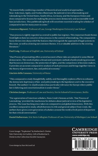 With nuanced perspective and detailed case studies, Due Process of Lawmaking explores the law of lawmaking in the United States, South Africa, Germany, and the European Union. This comparative work deals broadly with public policymaking in the legislative and executive branches. It frames the inquiry through three principles of legitimacy: democracy, rights, and competence. Drawing on the insights of positive political economy, the authors explicate the ways in which courts uphold these principles in the different systems. Judicial review in the American presidential system suggests lessons for the parliamentary systems in Germany and South Africa, while the experience of parliamentary government yields potential insights into the reform of the American law of lawmaking. Taken together, the national experiences shed light on the special case of the EU. In dialogue with each other, the case studies demonstrate the interplay between constitutional principles and political imperatives under a range of different conditions.