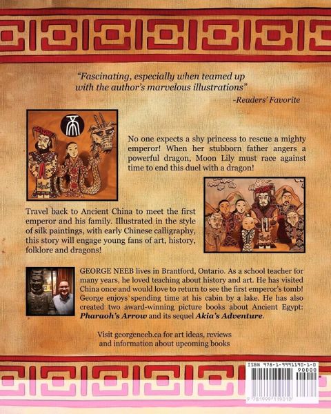 Help children discover the past with picture books that bring history to life! "Fascinating, especially when teamed up with the author's marvelous illustrations." -Readers' Favorite No one expects a shy princess to rescue a mighty emperor! When her stubborn father angers a powerful dragon, Moon Lily must race against time to end this duel with a dragon! Travel back to Ancient China to meet the first emperor and his family. Illustrated in the style of silk paintings, with early Chinese calligraphy, this story will engage young fans of art, history, folklore and dragons! Visit georgeneeb.ca for art ideas, reviews, and information about upcoming books.
