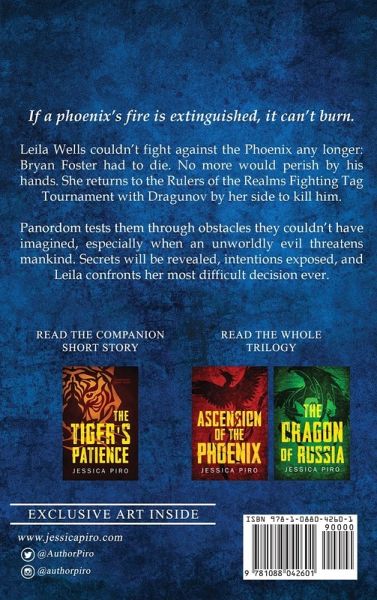 If a phoenix's fire is extinguished, it can't burn. Leila Wells couldn't fight against the Phoenix any longer: Bryan Foster had to die. No more would perish by his hands. She returns to the Rulers of the Realms Fighting Tag Tournament with Dragunov by her side to kill him. The competition doesn't matter, they just want his blood. Panordom tests them-and their dark sides-physically, mentally, and emotionally, with Foster present on the sidelines and when the former fling strains Leila and Dragunov's love. Discovering Xander's intention by using her to unleash an unworldly evil shifts their focus on solely getting vengeance. For everything to end, Leila confronts her most difficult decision ever. Winner of Literary Titan's Gold Award 1st place in 2022 Incipere's CLEAN Adventure Honorable Mention in 2022 Incipere's Adventure ¿¿¿