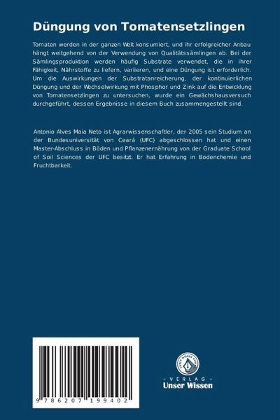 Tomaten werden in der ganzen Welt konsumiert, und ihr erfolgreicher Anbau hängt weitgehend von der Verwendung von Qualitätssämlingen ab. Bei der Sämlingsproduktion werden häufig Substrate verwendet, die in ihrer Fähigkeit, Nährstoffe zu liefern, variieren, und eine Düngung ist erforderlich. Um die Auswirkungen der Substratanreicherung, der kontinuierlichen Düngung und der Wechselwirkung mit Phosphor und Zink auf die Entwicklung von Tomatensetzlingen zu untersuchen, wurde ein Gewächshausversuch durchgeführt, dessen Ergebnisse in diesem Buch zusammengestellt sind.
