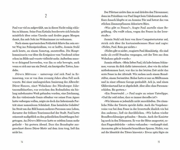 Zwei Brandstiftungen während der Adventszeit im Nürnberger Burgviertel und zwei tote junge Männer, die an Rauchvergiftung starben. Eines der Opfer hatte sich erst kürzlich in Paul Flemmings Fotostudio porträtieren lassen, weshalb das Interesse des Hobbydetektivs natürlich gleich geweckt ist. Während die Polizei zunächst von Zufallsopfern ausgeht, wittert Paul Mord und erfährt von einer Gemeinsamkeit der beiden Toten: Sie trugen Tätowierungen mit Motiven von Albrecht Dürer. Sofort werden bei Paul Erinnerungen an seinen allerersten Fall wach.