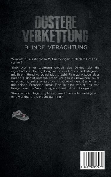 Würdest du als Kind den Mut aufbringen, dich dem Bösen zu stellen? 1989: Auf einer Lichtung unweit des Dorfes lebt die eigenbrötlerische Ingeborg. Als in der Nähe eine Fotografin mit ihrem Hund verschwindet, glaubt Finn zu wissen, dass Ingeborg dahintersteckt. Doch um das zu beweisen, muss er zunächst seine Angst vor ihr überwinden. Gemeinsam mit seinen Freunden gerät Finn in eine Verkettung von Ereignissen, die Verachtung und Leid mit sich bringen. Steckt wirklich Ingeborg hinter dem Bösen, oder verbirgt sich eine viel düsterere Macht dahinter? Diese Neuausgabe trägt einen neuen Untertitel, während der Haupttitel unverändert bleibt. Ursprünglich wurde dieses Buch unter dem Untertitel »Ingeborg« veröffentlicht.