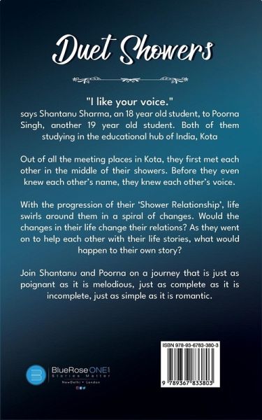 "I like your voice." says Shantanu Sharma, an 18 year old student, to Poorna Singh, another 19 year old student. Both of them studying in the educational hub of India, Kota Out of all the meeting places in Kota, they first met each other in the middle of their showers. Before they even knew each other's name, they knew each other's voice. With the progression of their 'Shower Relationship', life swirls around them in a spiral of changes. Would the changes in their life change their relations? As they went on to help each other with their life stories, what would happen to their own story? Join Shantanu and Poorna on a journey that is just as poignant as it is melodious, just as complete as it is incomplete, just as simple as it is romantic.