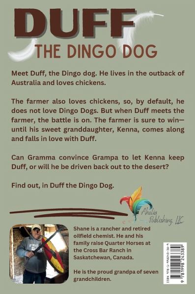 Meet Duff, the Dingo dog. He lives in the outback of Australia and loves chickens. The farmer also loves chickens, so, by default, he does not love Dingo Dogs. But when Duff meets the farmer, the battle is on. The farmer is sure to win-until his granddaughter, Kenna, comes along and falls in love with Duff. Can Gramma convince Grampa to let Kenna keep Duff, or will he be driven back out to the desert? Find out in Duff the Dingo Dog.