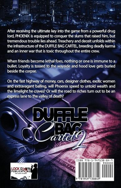 After receiving the ultimate key into the game from a powerful drug lord, PHOENIX is equipped to conquer the slums that raised him, but tremendous trouble lies ahead. Treachery and deceit unfolds within the infrastructure of the DUFFLE BAG CARTEL, breeding deadly karma and an inner war that is toxic throughout the entire crew. When friends become lethal foes, nothing or one is immune to a bullet. Loyalty is tossed to the wayside and hood love gets buried beside the corpse. On the fast highway of money, cars, designer clothes, exotic women and extravagant balling, will Phoenix speed to untold wealth and the limelight he craves? Or will the road to riches turn out to be an express lane to the valley of death?