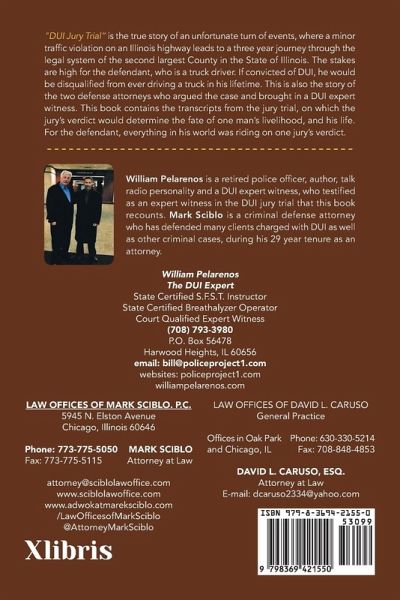 "DUI Jury Trial" is the true story of an unfortunate turn of events, where a minor traffic violation on an Illinois highway leads to a three year journey through the legal system of the second largest County in the State of Illinois. The stakes are high for the defendant, who is a truck driver. If convicted of DUI, he would be disqualified from ever driving a truck in his lifetime. This is also the story of the two defense attorneys who argued the case and brought in a DUI expert witness. This book contains the transcripts from the jury trial, on which the jury's verdict would determine the fate of one man's livelihood, and his life. For the defendant, everything in his world was riding on one jury's verdict.