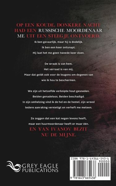 Op een koude, donkere nacht had een Russische moordenaar me uit een steegje ontvoerd. Ik ben gevaarlijk, maar hij is dodelijk. Ik ben een keer ontsnapt. Hij laat het me geen tweede keer doen. De wraak is van hem. Het verraad is van mij. Maar dat geldt ook voor de leugens om degenen van wie ik hou te beschermen. We zijn uit hetzelfde verknipte hout gesneden. Beiden genadeloos. Beiden beschadigd. In zijn omhelzing vind ik de hel en de hemel, zijn wreed tedere aanraking vernietigt en verheft me meteen. Ze zeggen dat een kat negen levens heeft, maar een huurmoordenaar heeft er maar één. En Yan Ivanov bezit nu de mijne.
