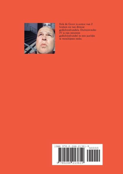 Erik de Groot heeft diverse boeken en gedichtenbundels gepubliceerd. Duivenvoeder IV is zijn nieuwste gedichtenbundel in een stijl die volgens sommigen vrij apart is maar zeker vrij en volgens de dichter zelf van zijn genialiteit getuigen.