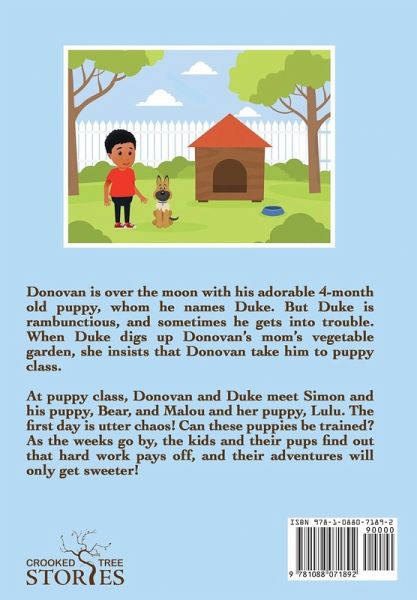 Donovan is over the moon with his adorable 4-month old puppy, whom he names Duke. But Duke is rambunctious, and sometimes he gets into trouble. When Duke digs up Donovan's mom's vegetable garden, she insists that Donovan take him to puppy class. At puppy class, Donovan and Duke meet Simon and his puppy, Bear, and Malou and her puppy, Lulu. The first day is utter chaos! Can these puppies be trained? As the weeks go by, the kids and their pups find out that hard work pays off, and their adventures will only get sweeter!
