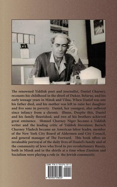 The renowned Yiddish poet and journalist, Daniel Charney, recounts his childhood in the shtetl of Dukor, Belarus, and his early teenage years in Minsk and Vilna. When Daniel was one his father died, and his mother was left to raise her daughter and five sons in poverty. Daniel, her youngest, also suffered since infancy from a chronic illness. Despite this, Daniel and his family flourished, and two of his brothers achieved great eminence. Shmuel Charney Niger became a Yiddish writer and the leading critic of Yiddish literature; Baruch Charney Vladeck became an American labor leader, member of the New York City Board of Aldermen and City Council, and general manager of The Forward. This book offers an invaluable portrayal of the daily lives of Daniel's family and of the community of Jews who lived in pre-revolutionary Russia, both in Minsk and in the shtetls at a time when Zionism and Socialism were playing a role in the Jewish community