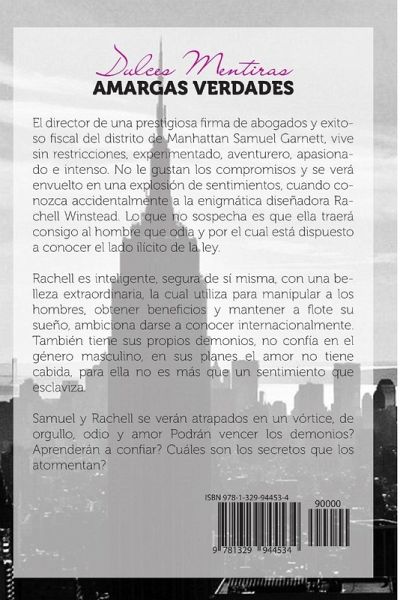 El director de una prestigiosa firma de abogados y exitoso fiscal del distrito de Manhattan Samuel Garnett, vive sin restricciones, experimentado, aventurero, apasionado e intenso. No le gustan los compromisos y se verá envuelto en una explosión de sentimientos, cuando conozca accidentalmente a la enigmática diseñadora Rachell Winstead. Lo que no sospecha es que ella traerá consigo al hombre que odia y por el cual está dispuesto a conocer el lado ilícito de la ley. Rachell es inteligente, segura de sí misma, con una belleza extraordinaria, la cual utiliza para manipular a los hombres, obtener beneficios y mantener a flote su sueño, ambiciona darse a conocer internacionalmente. También tiene sus propios demonios, no confía en el género masculino, en sus planes el amor no tiene cabida, para ella no es más que un sentimiento que esclaviza. Samuel y Rachell se verán atrapados en un vórtice, de orgullo, odio y amor Podrán vencer los demonios? Aprenderán a confiar? Cuáles son los secretos que los atormentan?