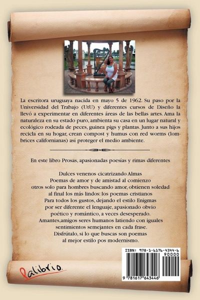 En este libro Prosas, apasionadas poesías y rimas diferentes Dulces venenos cicatrizando Almas Poemas de amor y de amistad al comienzo otros solo para hombres buscando amor, obtienen soledad al final los más lindos: los poemas cristianos Para todos los gustos, dejando el estilo Enigmas por ser diferente el lenguaje, apasionado obvio poético y romántico, a veces desesperado. Amantes,amigos seres humanos latiendo con iguales sentimientos semejantes en cada frase. Disfrútalo, si lo que buscas son poemas al mejor estilo pos modernismo.