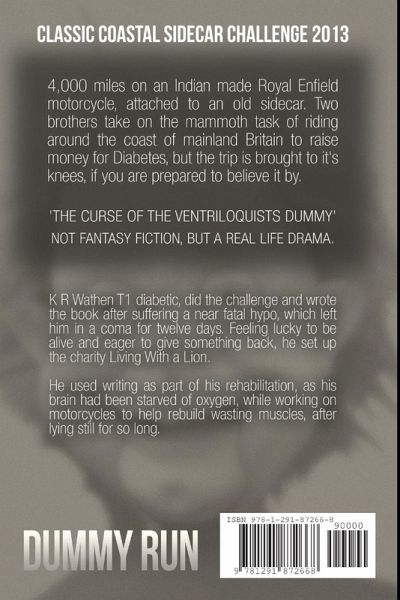 Two brothers take on the mammoth challenge of riding 4000 miles around the coast of mainland Britain, on a rickety old motorbike and sidecar outfit. The challenge is set up to raise money for diabetes after one of the brothers suffered a near fatal hypo, leaving him in a coma for 12 days. Feeling lucky and grateful to be alive, despite being diagnosed with osteoporosis shortly after and suffering several spinal fractures, Keith and his brother Ian set out to help others with diabetes. But the trip turns to disaster, over shadowed by the curse of the ventriloquists dummy! If you're prepared to believe it. All the evidence is there. Please, go ahead and read the book, you can then make up your own mind.