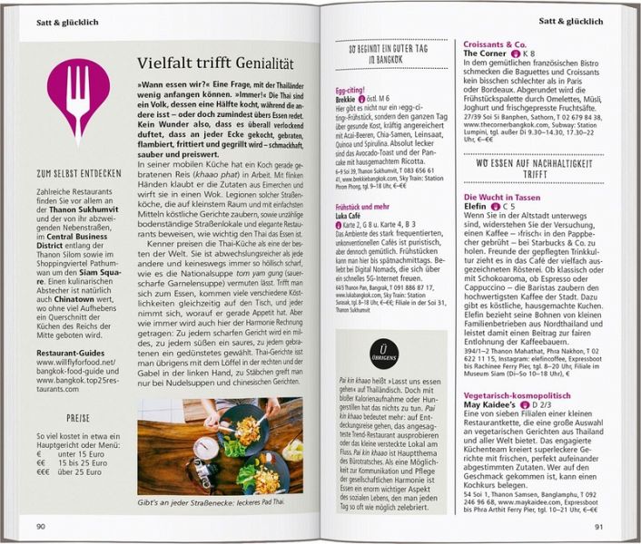 Mit den Übersichtskarten, genauen Stadtteilplänen und dem separaten großen Cityplan können Sie sich nach Lust und Laune durch Bangkok treiben lassen.