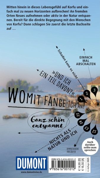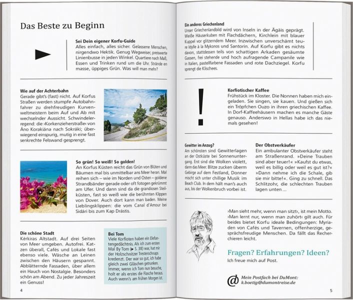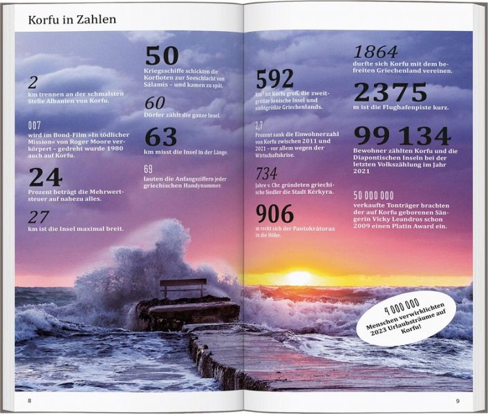 Dank vieler Tipps und Adressen erfahren Sie, wo es sich in fremden Betten gut schläft, wo Sie glücklich satt werden, wohin die Korfioten zum Stöbern und Entdecken gehen und wohin es sie zieht, wenn die Nacht beginnt.
