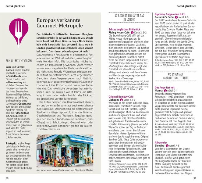 Mit den 15 »Direkt-Kapiteln« des Reiseführers von Peter Sahla können Sie sich zwanglos unter die Londoner mischen, direkt in das Stadtleben eintauchen und die Highlights und Hotspots kennenlernen: die Tummelplätze der Reichen und neue Szeneviertel, Westminster und den Tower, pittoreske Pubs oder grandiose Museen, das exzentrische Soho und die exotische Chinatown, Camden Market und Covent Garden. In eigenen Kapiteln erfahren Sie, wo es sich in fremden Betten gut schläft, wo Sie glücklich satt werden, wohin die Londoner zum Stöbern und Entdecken gehen und wohin es sie zieht, wenn die Nacht beginnt.
