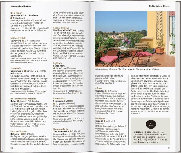 Selbst die Römer können sich der Faszination ihrer 'Ewigen Stadt' nicht entziehen, ihrer Millionen-Metropole mit modernem Alltag und jahrtausendealter Geschichte, dem italienischen Zentrum von Katholizismus und Politik, Alta Moda, Film, Kunst und Esskultur. Mit den 15 'Direktkapiteln' des Reiseführers von Caterina Mesina können Sie sich zwanglos unter die Römer mischen, direkt in das Stadtleben eintauchen und die Highlights und Hotspots kennenlernen: - antike Ausgrabungen und neue Trendviertel, - Petersdom und Campo de' Fiori, - prunkvolle Palazzi und dörfliche Plätze, - Forum Romanum und Kolosseum, - die Sixtinische Kapelle und großartige Museen. In eigenen Kapiteln erfahren Sie, wo es sich in fremden Betten gut schläft, wo Sie glücklich satt werden, wohin die Römer zum Stöbern und Entdecken gehen und wohin es sie zieht, wenn die Nacht beginnt. Mit den Übersichtskarten, genauen Stadtteilplänen und dem separaten großen Cityplan können Sie sich nach Lust und Laune durch die Stadt treiben lassen.