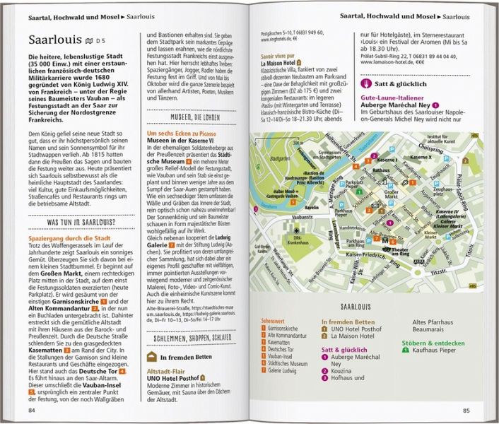 Mit den Übersichtskarten, genauen Stadtplänen und dem separaten großen Faltplan können Sie nach Lust und Laune das Saarland erkunden.