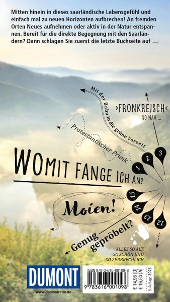 Mit den 15 »Direktkapiteln« des Reiseführers von Wolfgang Felk und Nicole Sperk können Sie sich zwanglos unter die Saarländer mischen, direkt in das Lebensgefühl im Dreiländereck eintauchen, aktiv in der Natur entspannen und die Highlights kennenlernen: Saarbrücken und den Saar-Urwald, Stätten aus keltisch-römischer Zeit, die Völklinger Hütte und die Abtei Tholey, Gartenkultur und Weinbau im Grenzland, das Tal der Blies und die Festungsstadt Saarlouis.