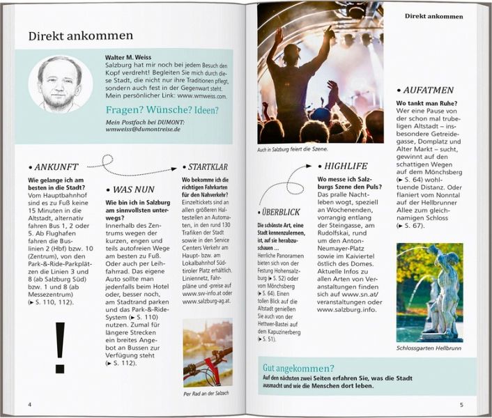 Ganz am Puls der Zeit fühlen sich die Salzburger in ihrer Festspiel-und Mozartstadt, zwischen Barock und Business, Bräuwirt und Gourmettempel, Trachtenjanker und Off-Szene. Mit den 15 'Direktkapiteln' des Reiseführers von Walter M. Weiss können Sie sich zwanglos unter die Salzburger mischen, direkt in das Stadtleben eintauchen und die Highlights und Hotspots kennenlernen: - alte und neue Trendviertel, - die Festung Hohensalzburg und den Dom, - Altstadt und Steinviertel, - Kapuziner- oder Mönchsberg, - Schlösschen im Grünen oder spannende Museen, - zeitgenössische Architektur und literarische Erinnerungsorte. In eigenen Kapiteln erfahren Sie, wo es sich in fremden Betten gut schläft, wo Sie glücklich satt werden, wohin die Salzburger zum Stöbern und Entdecken gehen und wohin es sie zieht, wenn die Nacht beginnt. Mit den Übersichtskarten, genauen Stadtteilplänen und dem separaten großen Cityplan können Sie sich nach Lust und Laune durch die Stadt treiben lassen.