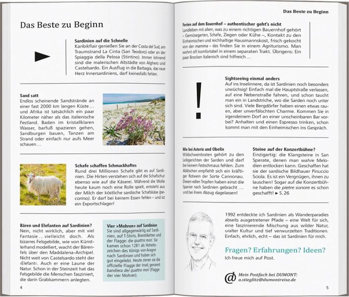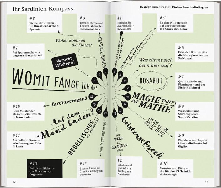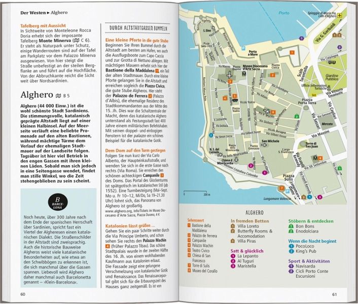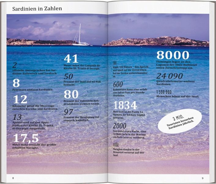 Dank vieler Tipps und Adressen erfahren Sie, wo es sich in fremden Betten gut schläft, wo Sie glücklich satt werden, wohin die Sarden zum Stöbern und Entdecken gehen und wohin es sie zieht, wenn die Nacht beginnt.