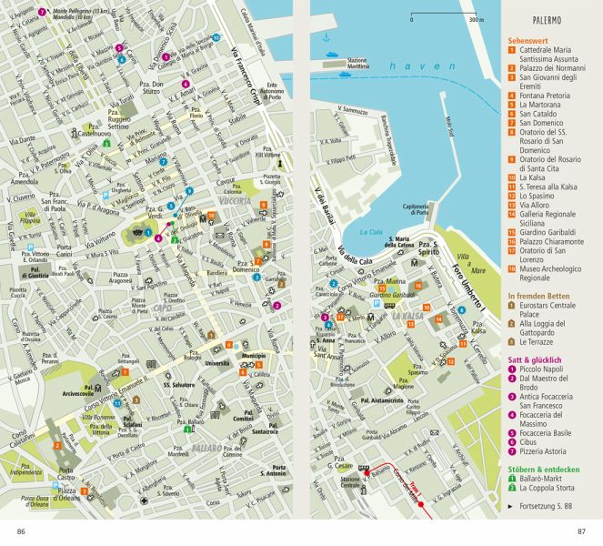 Mit den Übersichtskarten, genauen Stadtplänen und dem separaten großen Faltplan können Sie nach Lust und Laune Sizilien erkunden.