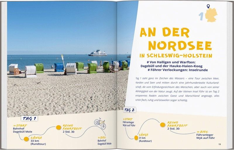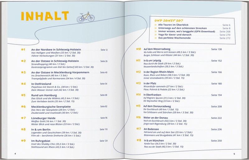 GANZ OHNE EILE, einen Gang runterschalten, einfach treiben lassen: 20 herrlich entspannte Radwochenenden in Deutschland. Schäfchen zählen in Ostfriesland, von Leuchtturm zu Leuchtturm radeln an der Ostsee. Durch Pfälzer Weinberge kurven, ein bisschen Südsee-Feeling am Bodensee genießen, es auf den Bahntrassen im Ruhrgebiet rollen lassen. Oder lieber entspanntes Flussradeln an Weser und Donau? Ein freies Wochenende, ein Fahrrad - mehr braucht es nicht für einen herrlich entspannten Kurzurlaub!